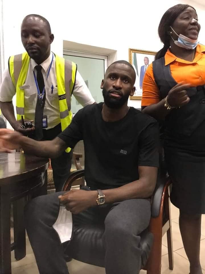 Chelsea and Germany International Defender, Antonio Rüdiger has arrived at the Lungi International Airport in Freetown, Sierra Leone for a week working visit.