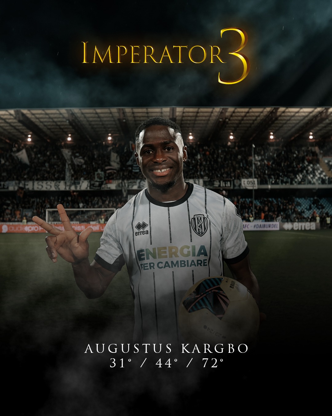 Cesena achieved its fifth consecutive win in the league thanks to an outstanding performance by Leone Stars Forward, Augustus Kargbo who netted his first hat trick for Cesena to secure a comfortable 4-0 victory over Virtus Entella.