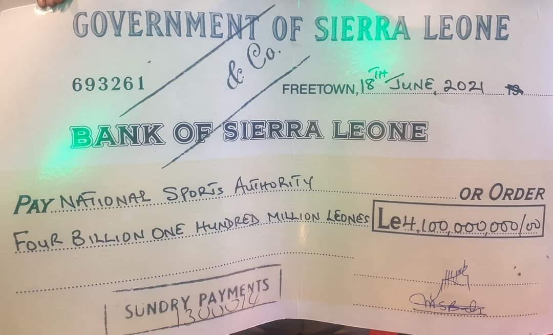 The President of the Republic of Sierra Leone, Julius Maada Bio has handed over the land documents to each Leone Stars player and a cheque of Le 4,100,000,000 to the Minister of Sport at the Presidential Dinner at Bintumani Hotel.