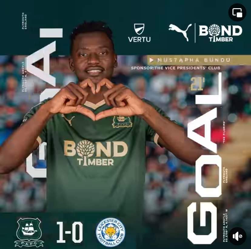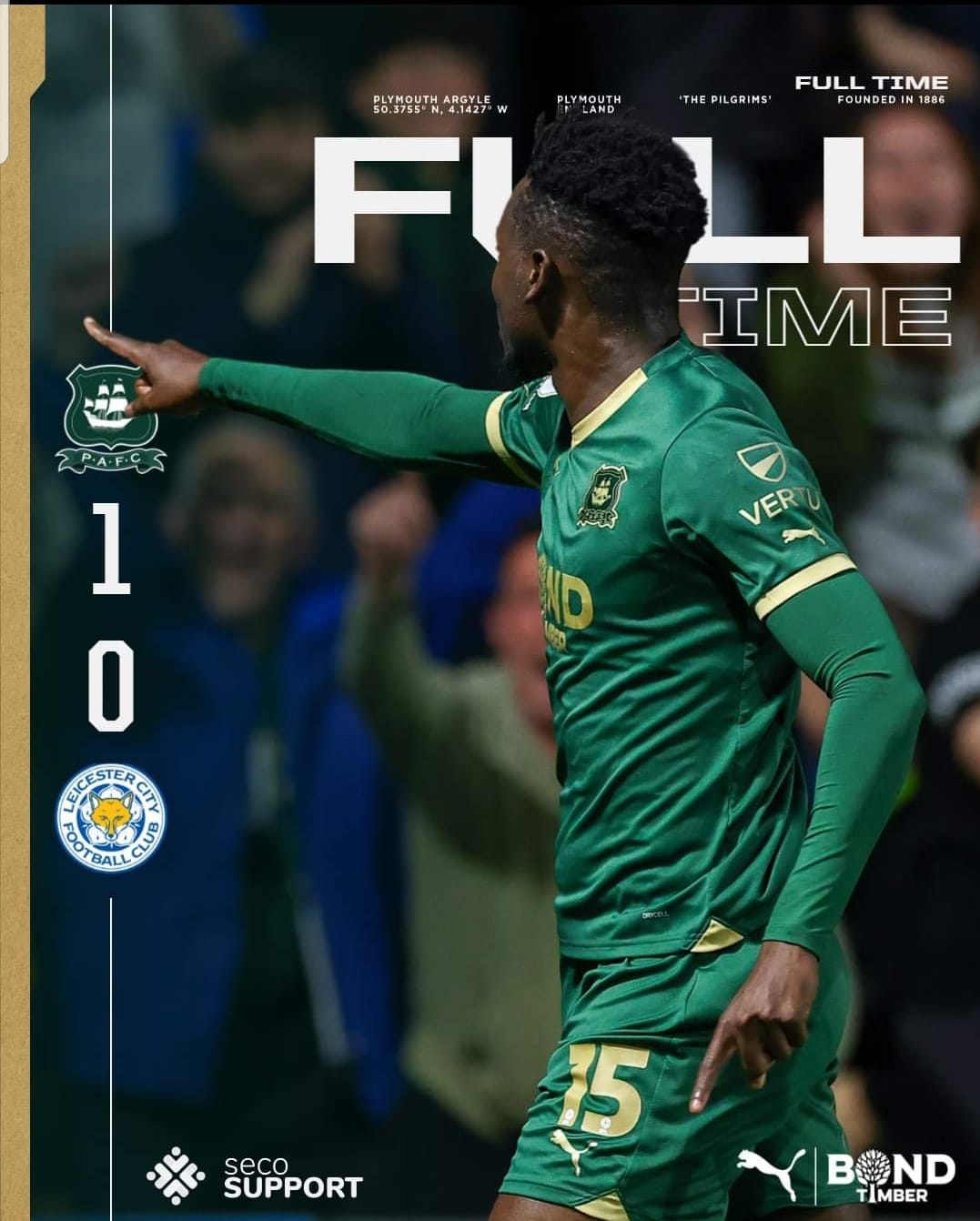 Mustapha Bundu from Sierra Leone scored the only goal of the game, helping Plymouth Argyle to a 1-0 win over Championship leaders Leicester City.