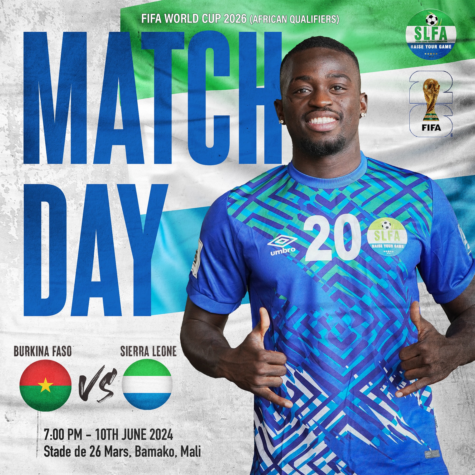 Sierra Leone is set to continue its 2026 AFCON qualification campaign with a visit to Burkina-Faso at the Stade De 26 Mars in Mali on Monday evening