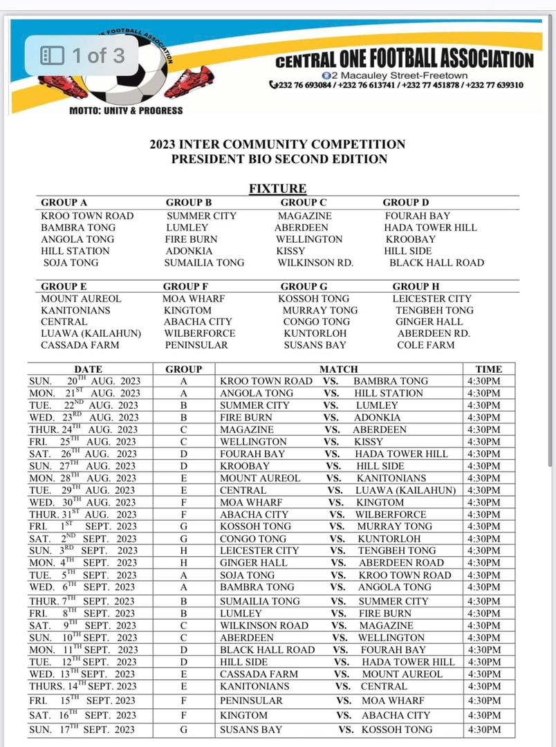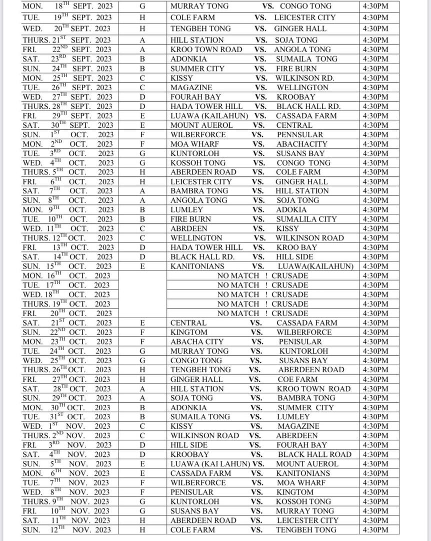 The final group fixture will be played on Sunday, 12th November as Cole Farm take on Tengbeh Town.