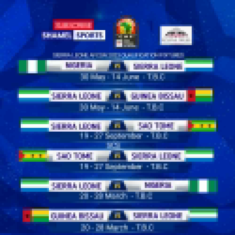The Confederation of African Football[ CAF] has officially released Leone Stars 2023 AFCON qualifiers fixtures of Group A matches.