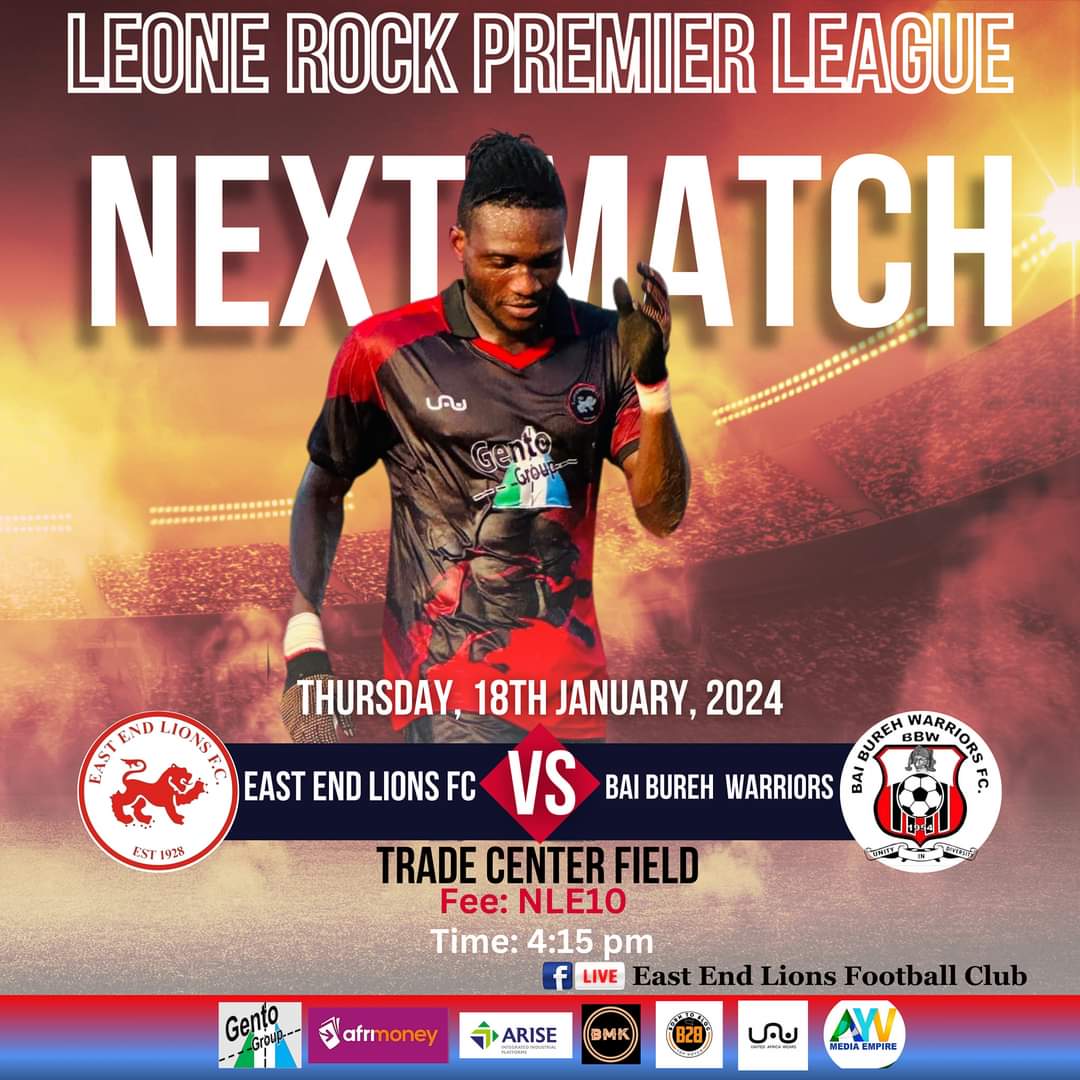 If East End Lions wins today’s crucial match, it will take them to 15th in the League above Bai Bureh Warriors, Kholifa Stars and Wilberforce Strikers.