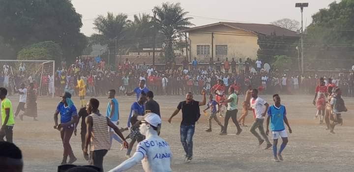 Angry fans have stormed the Trade Centre Field today 27th January after Bo Rangers scored a late goal against East End Lions.