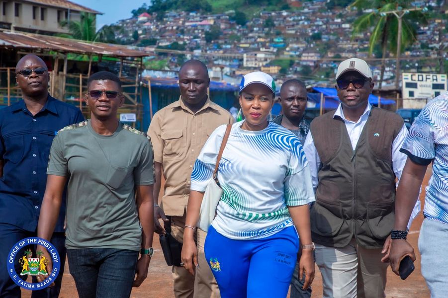 The First Lady, Madam Fatima Bio on 4th September, 2022, took the Kick-offs of President Julius Maada Bio’s sponsored tournament at the Central one Football Association (COFA) inter-community league at the Parade grounds.