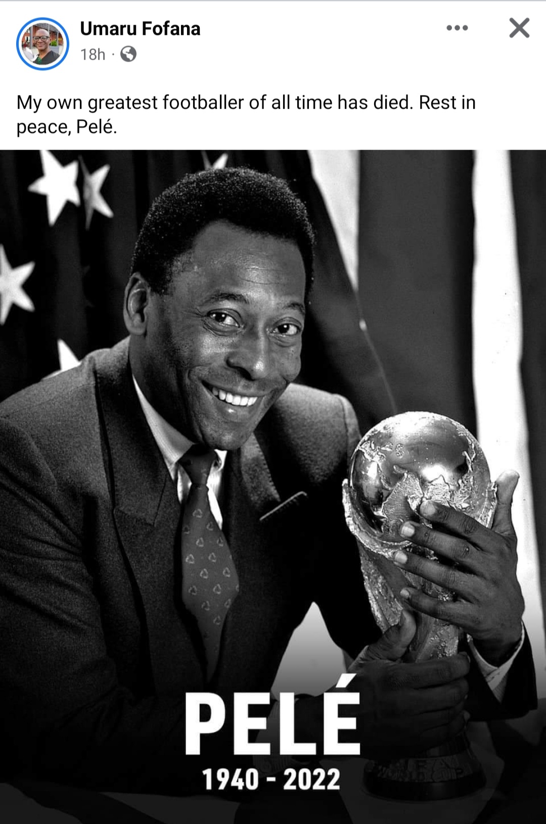 Prominent Sierra Leonean Journalist, Umaru Fofana has joined the rest of the world in mourning the death of Brazilian football icon, Pele, who he referred to as “My Greatest Footballer of All Time”.