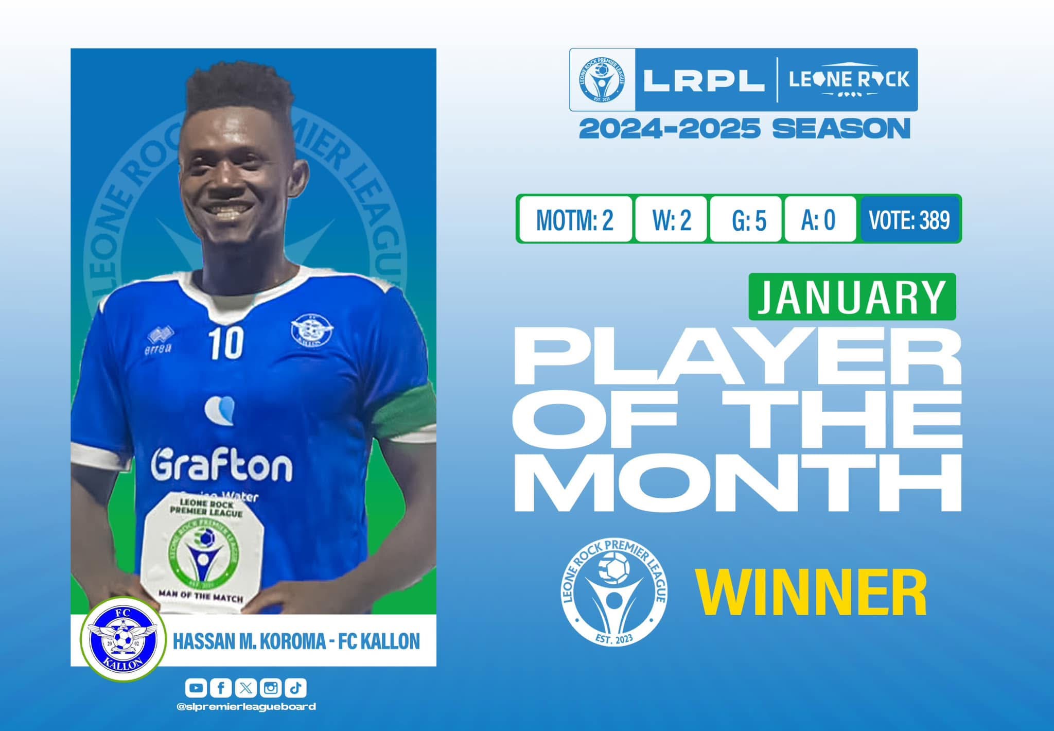 Hassan Milla Koroma from FC Kallon has been named Leone Rock Player of the Month for January.