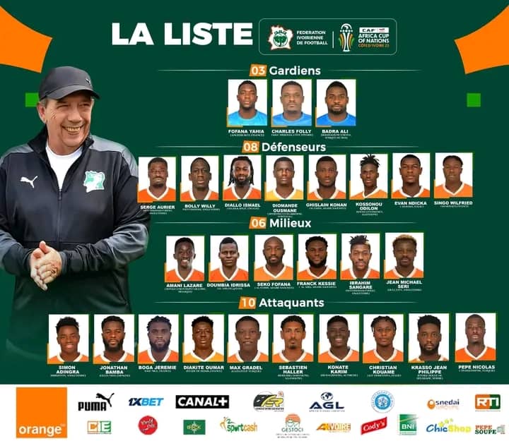 In a strategic move to enhance its preparation for the African Cup of Nations , the Ivorian Football Federation has unveiled the list of 27 players ahead of their friendly clash with Leone Stars of Sierra Leone on Saturday 6th January, 2023 at the Laurent Poukou De San. Pedro Stadium.
