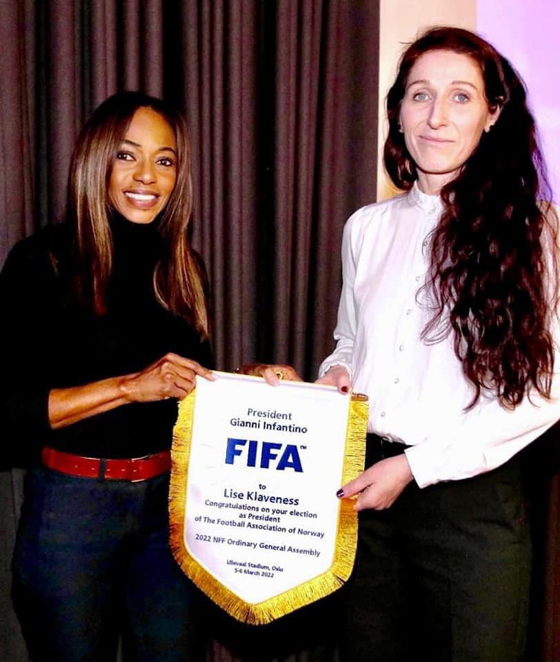 Isha Johansen representing Fifa, delivers a powerful speech today in Oslo at the Norwegian Football Federation Elective General Assembly.