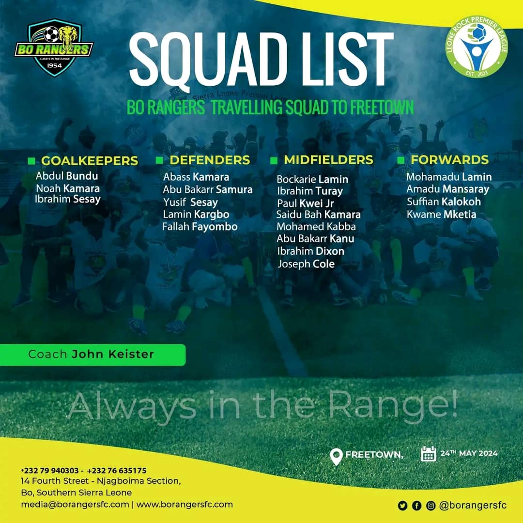 Some player of Bo Rangers were left out of the Keister 20 Man squad Due to injuries, illness, and suspension. The coach reportedly did not have the luxury to select and travel with his