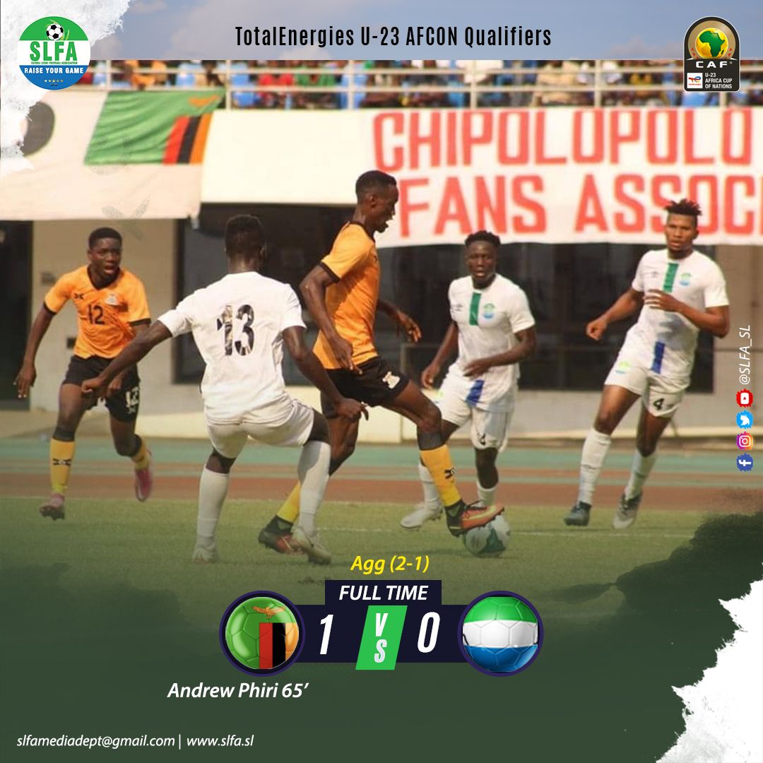 Leone Stars U-23 squad has today, Saturday 29th October 2022 kicked out of the TotalEnergies U23 AFCON qualifiers by the Young Chipolpolo of Zambia.