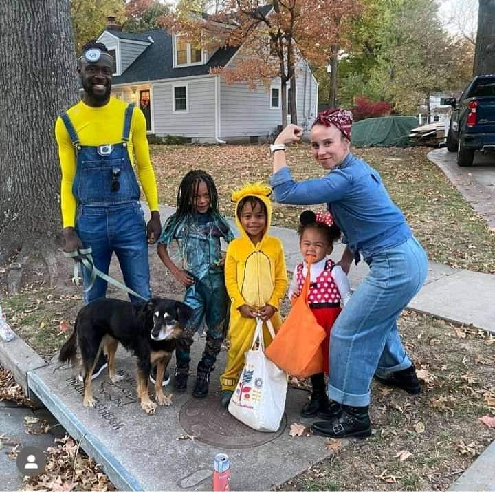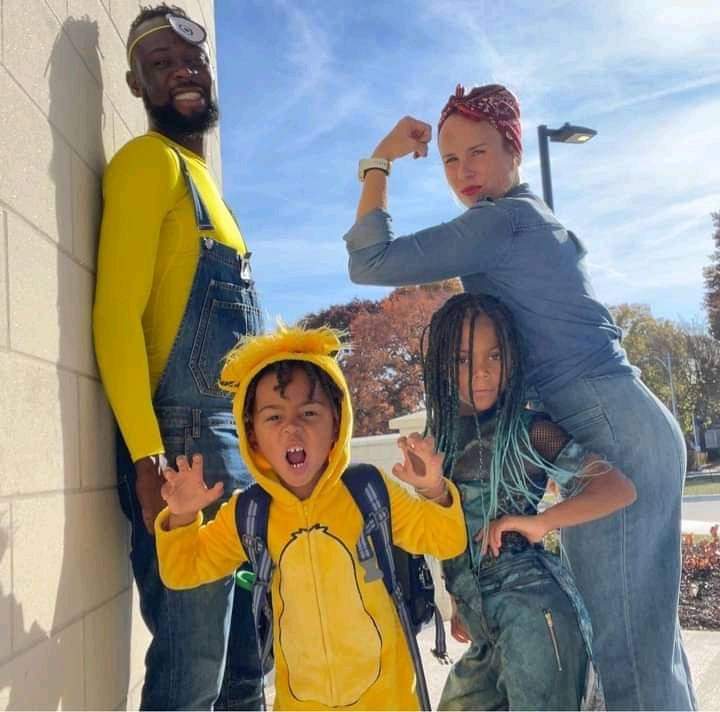 Sierra Leone Football superstar, Kei Kamara shared these adorable family photos of himself posing with his wife, Kristin Kamara, their three children and their dog Chelsea.