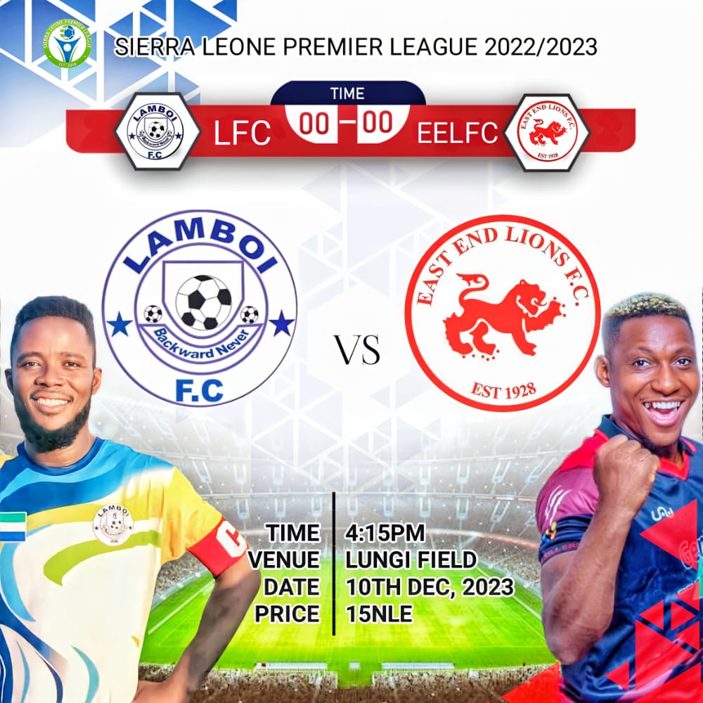 The newly promoted Lamboi FC will take on East End Lions at the Lungi Central field on Saturday 10th December 2022.