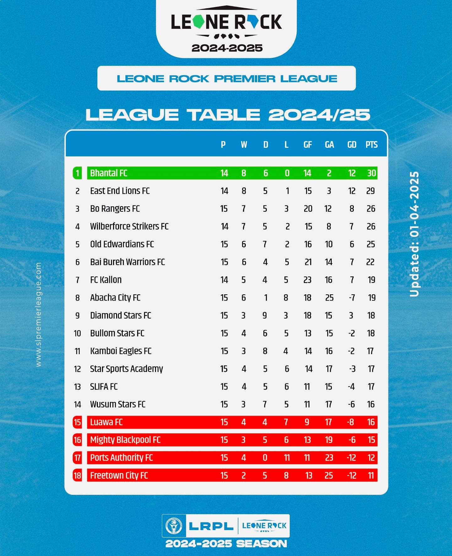 The Leone Rock Premier League witnessed another dramatic match 15 week, with Bhantal FC clinging to the top spot despite a goalless draw against Mighty Blackpool FC.