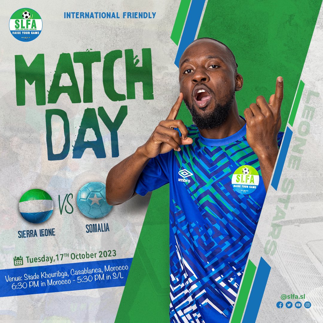 The National Senior Men’s Team of Sierra Leone, Leone Stars will clash today, Tuesday, October 17, with the Ocean Stars of Somalia in Casablanca, Morocco.