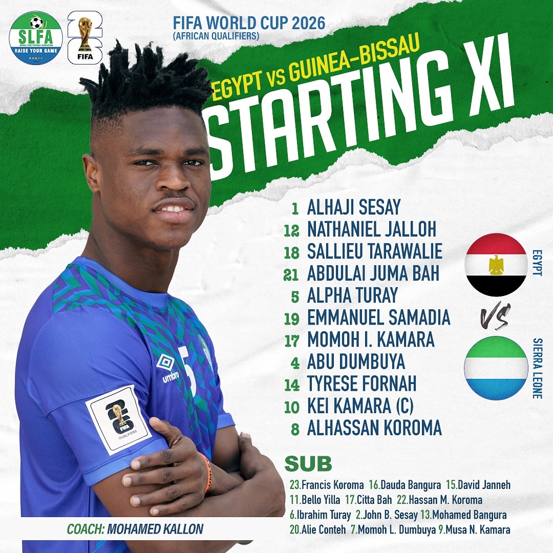 Leone Stars head coach  Mohamed Kallon, has announced the squad set to face Egypt in a highly anticipated FIFA World Cup qualifier.