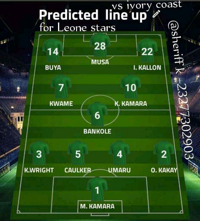 Ahead of the match against the Elephants of Ivory Coast, Sierra Loaded presents the predicted lineup that coach John Keister will parade.