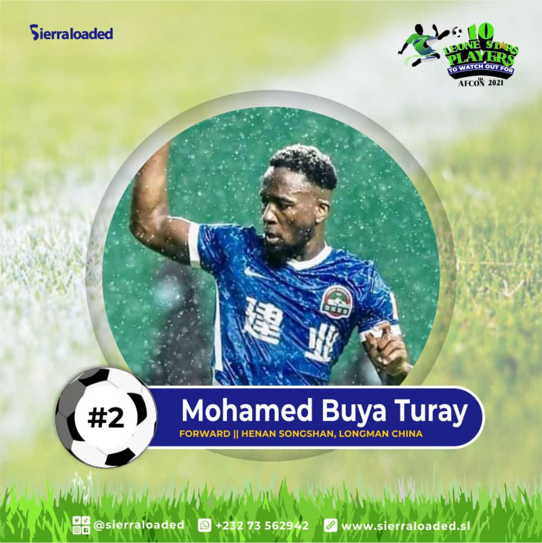 Mohamed Buya Turay is a 26- year old Sierra Leonean Professional Footballer who currently plays in the Chinese -Super League as a center -Forward for Henan Songshan Longmen. The Forward has made six appearance for the Sierra Leone national team, Leone Stars.