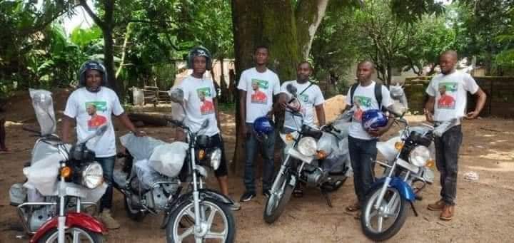 Today, Mohamed Buya has donated has donated four motorbikes and a vehicle to the youths of Magburaka.