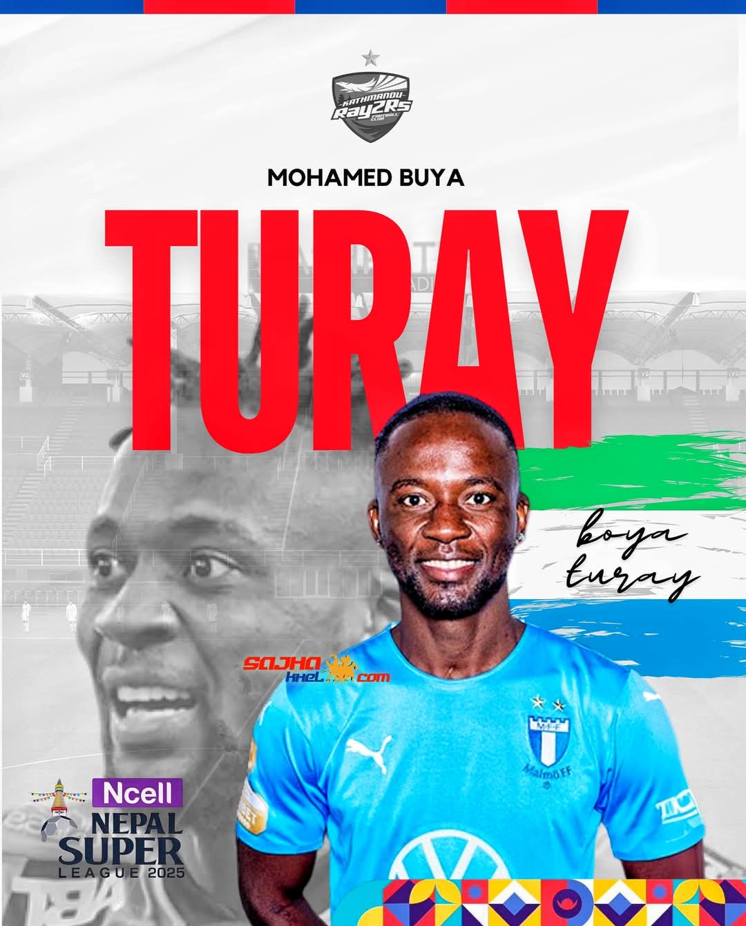 Kathmandu Rayzrs FC has officially signed Sierra Leonean forward Mohamed Buya Turay for the upcoming Nepal Super League Season 3, set to kick off on March 29, 2025.