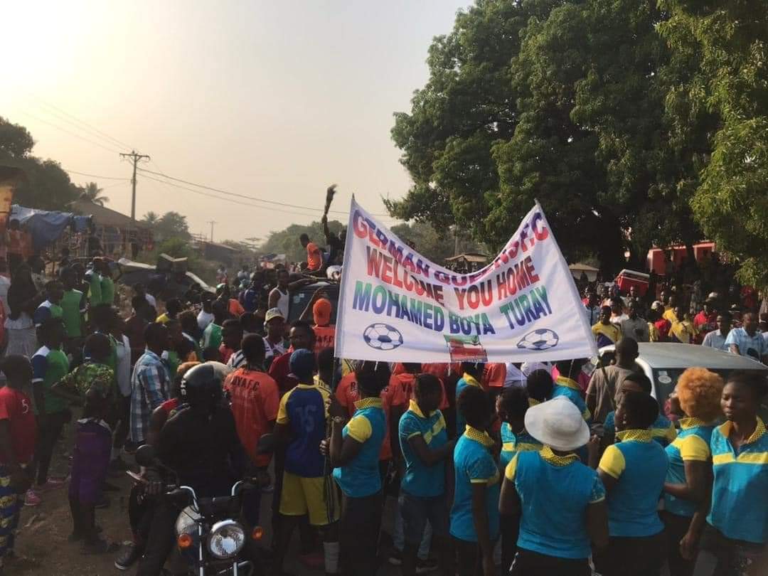 Sierra Leonean international soccer player and philanthropist; Mohamed Buya Turay received a warm welcome in his hometown of Magburaka in Tonkolili District, Northern part of Sierra Leone.