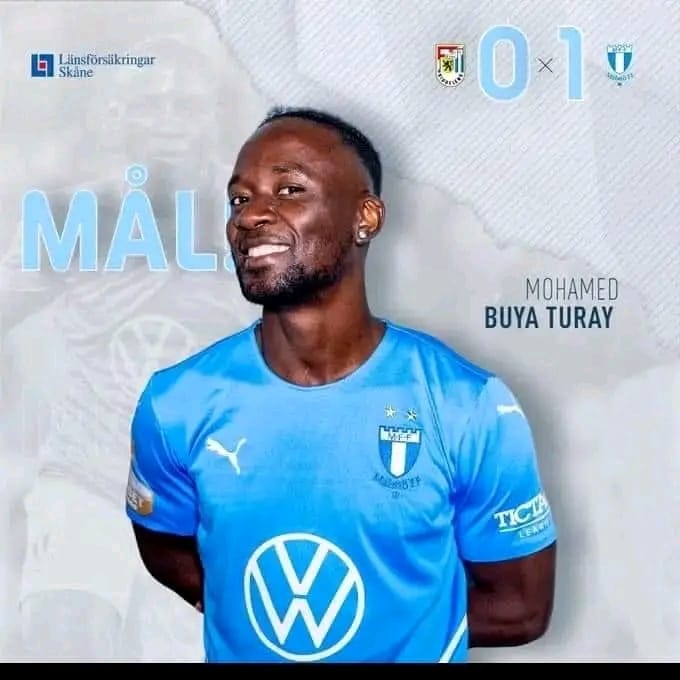 Sierra Leone National team, Leone Stars Forward Mohamed Buya Turay has netted his first goal for his new team Malmö FF in the Europa League Qualification.