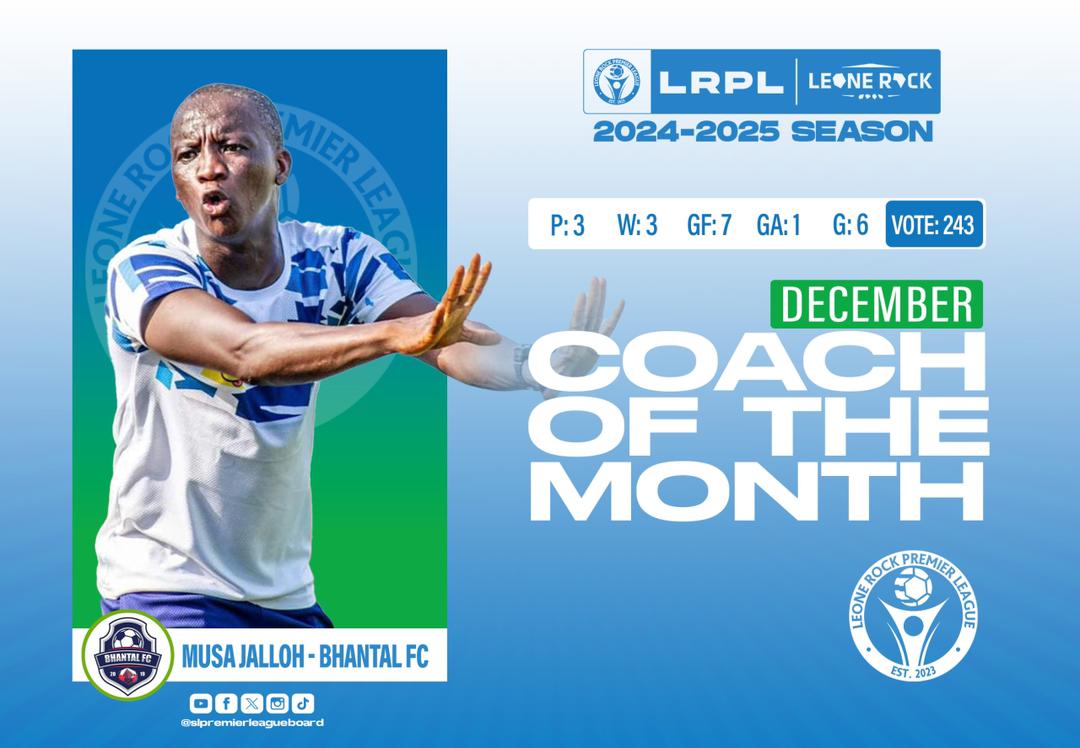 Congratulations to Musa Jalloh on this well-deserved achievement, as he continues to lead Bhantal FC towards greater success in the Leone Rock Premier League.