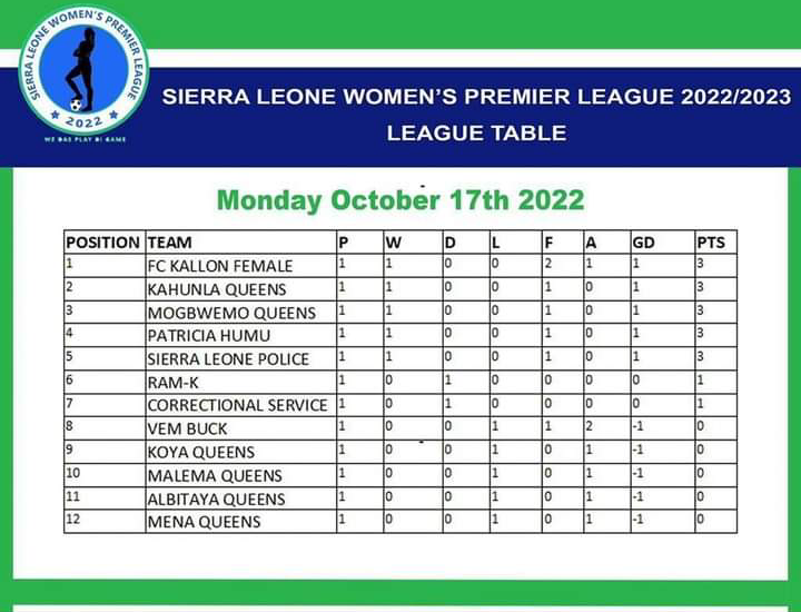 A total of six goals were scored during the first week of the maiden Women’s Premier League in Sierra Leone, Matilda Vivian Kabba recorded her name on the history books being the first player to score a goal in the league, and FC Kallon Female winger Marie B. Konteh leading the goal tally with two goals.
