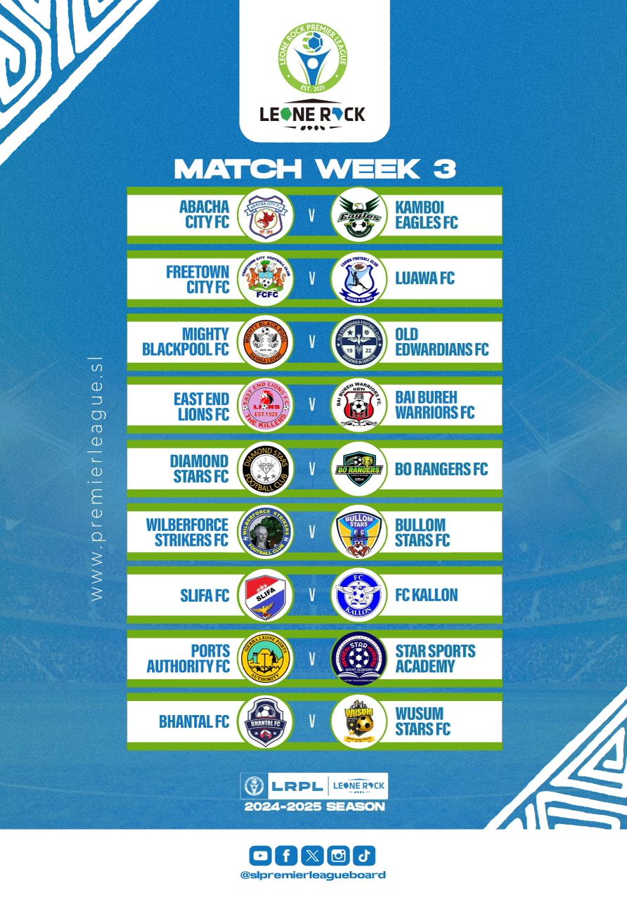 FULL FIXTURE SCHEDULE FOR MATCHWEEK THREE (3)