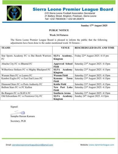 The 2025 Sierra Leone Premier League enters a decisive stage today, Saturday, 23 August, as six matches are scheduled to conclude the season. Four fixtures carry significant implications for the relegation battle, with one final spot still to be decided.