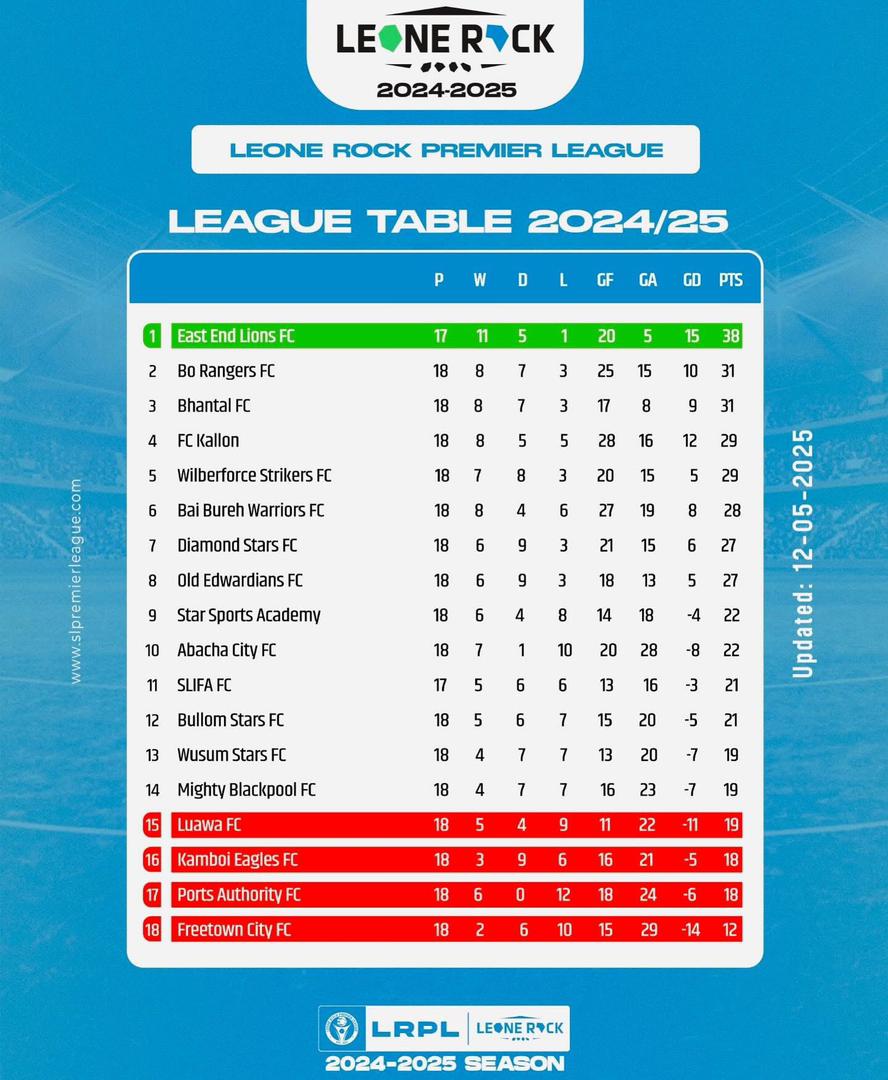 The current standings reflect the commencement of the second phase of the league, which began on May 7, 2025. This phase follows a brief hiatus due to Sierra Leone’s participation in the U-20 Africa Cup of Nations (AFOCON) tournament held in Egypt.