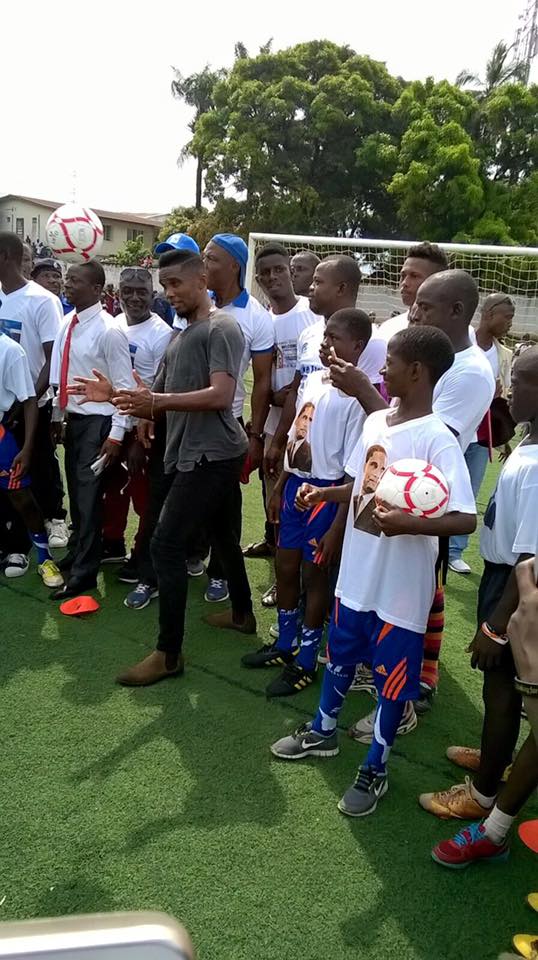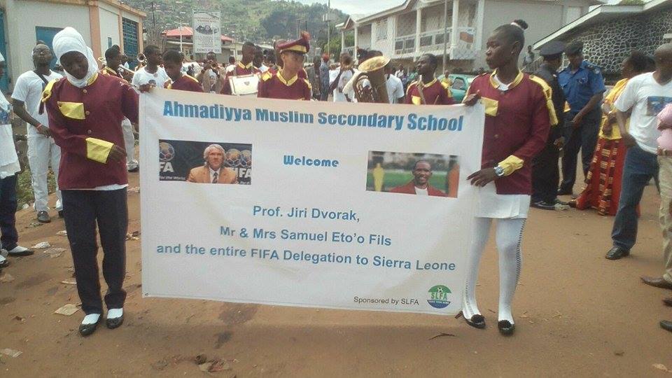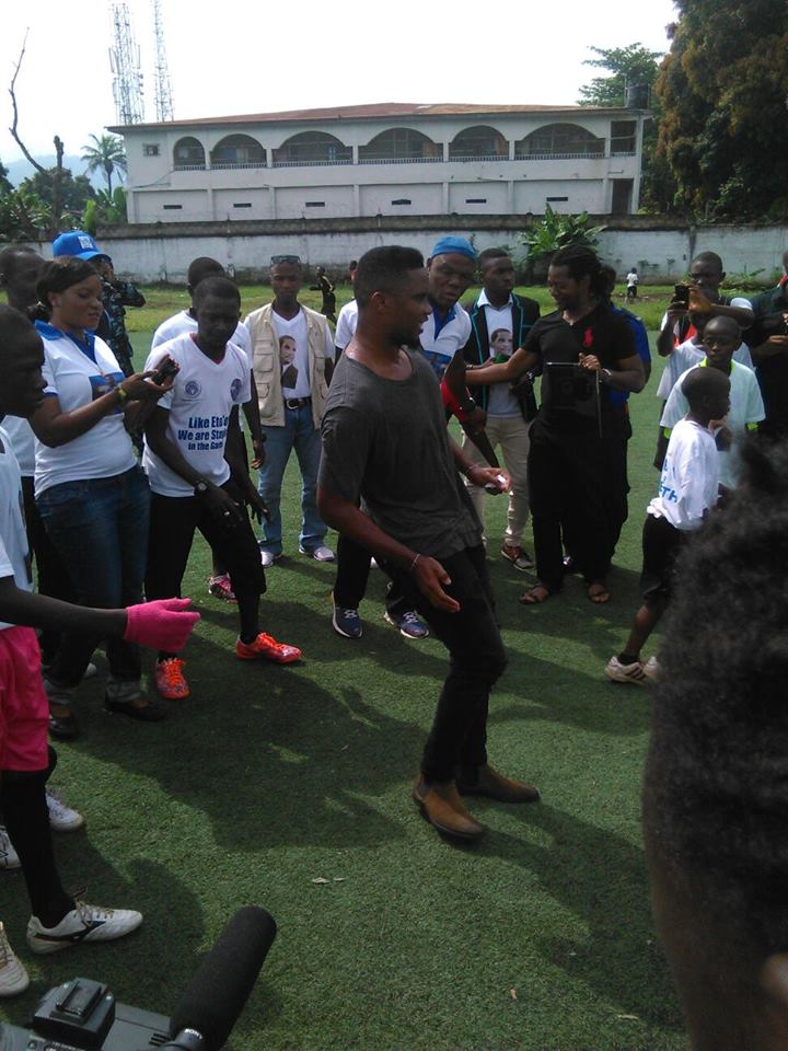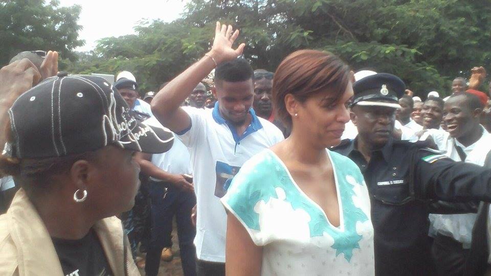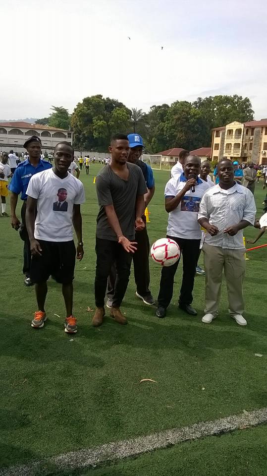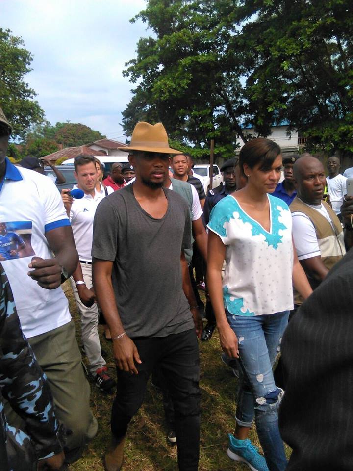 Eto’O, his Wife and other entourage were at Ahmadiya Secondary School, Kissy Dock-Yard, Freetown today.