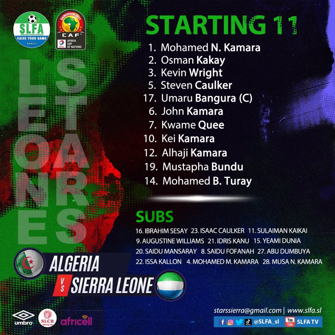 Leone Stars Manager John Keister has announced his starting line-up for Tuesday afternoon crucial clash with Algeria at the Japoma Stadium.