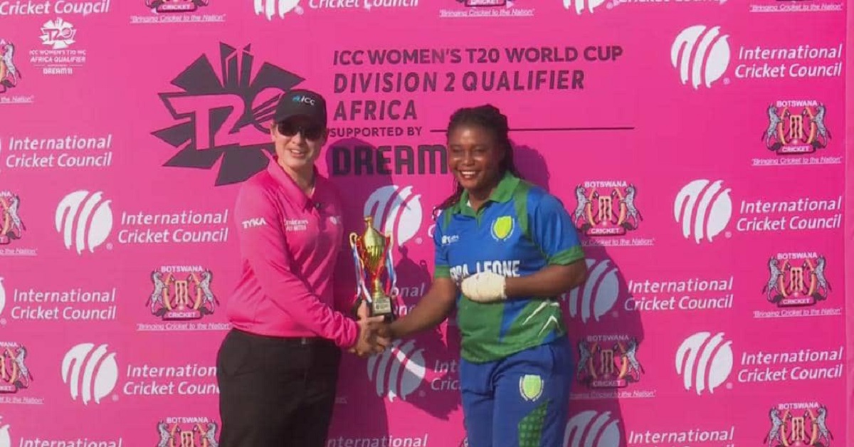 Sierra Leone scored 56 for 0 wickets having earlier all out Mozambique for 55 in 16.3 overs. Janet Kowa won the player of the match against Mozambique in the ongoing ICC Women’s T20 Cricket World Cup Qualifier Africa division 2 in Gaborone Botswana