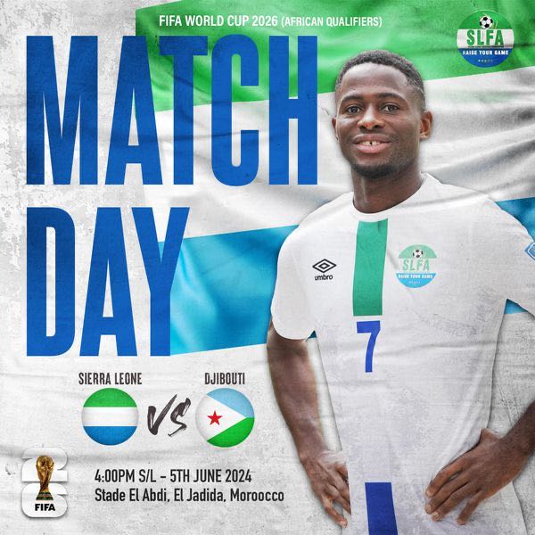 The Leone Stars of Sierra Leone are set to take on Djibouti today 5th June 2024 in the ongoing 2026 FIFA World Cup qualifier.