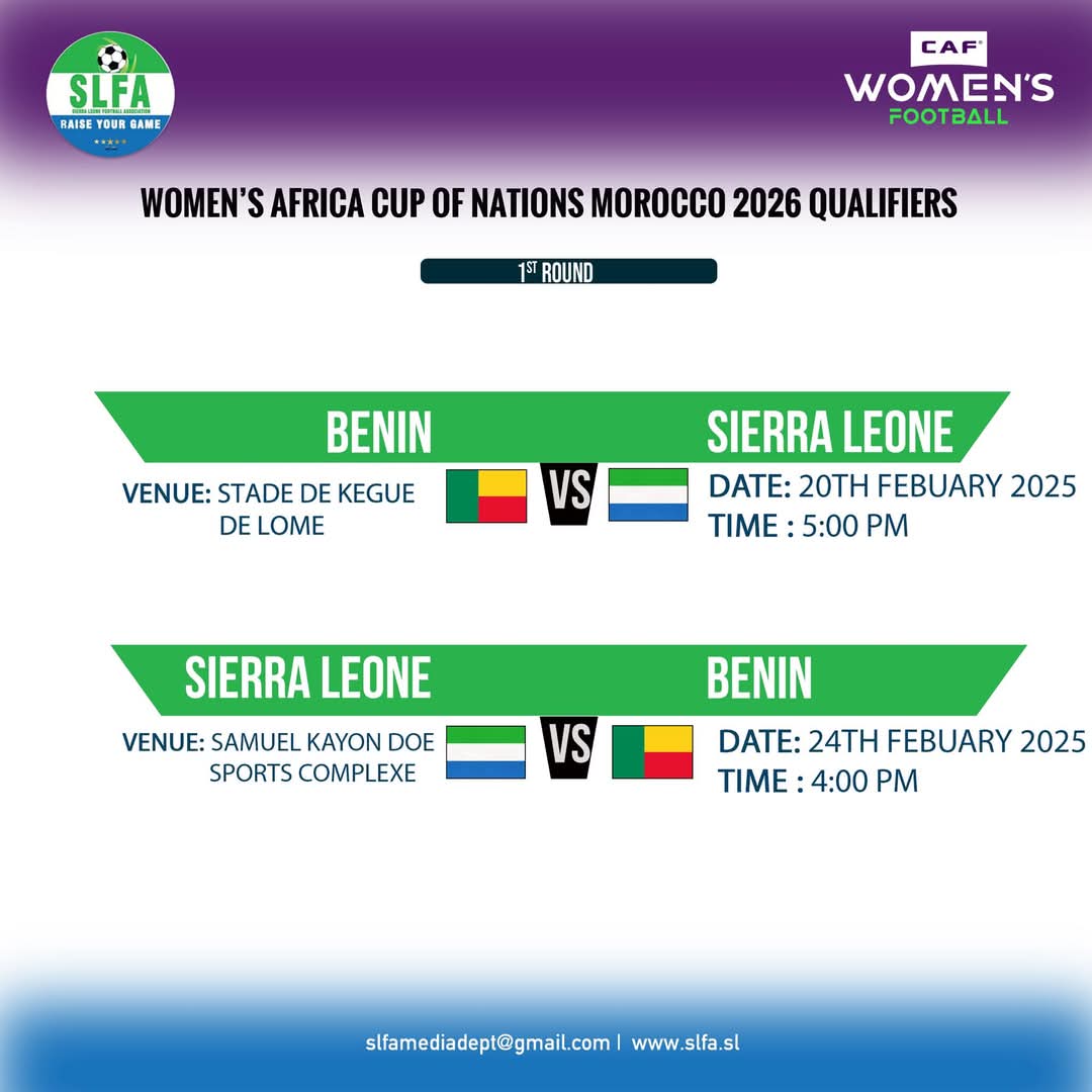 The Sierra Leone Senior National Female Team, Sierra Queens, are gearing up for a crucial double-header against Benin in the first preliminary round of the Women’s Africa Cup of Nations (WAFCON) Morocco 2026 qualifiers.