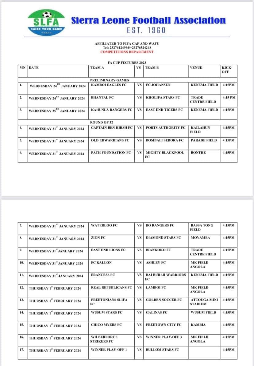 The Sierra Leone Football Association has unveiled the 2024 FA Cup draw.