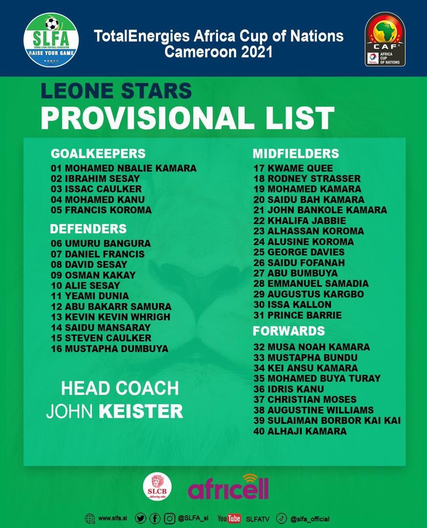 The Sierra Leone Football Association (SLFA) has released a 40 man provisional squad list for the Leone Stars of Sierra Leone ahead of AFCON 2021.