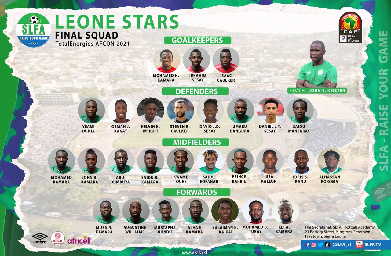 Leone Stars head Coach, John Kiester has announced the Leone Stars final 28-man list for the African Cup of Nations in Cameroon