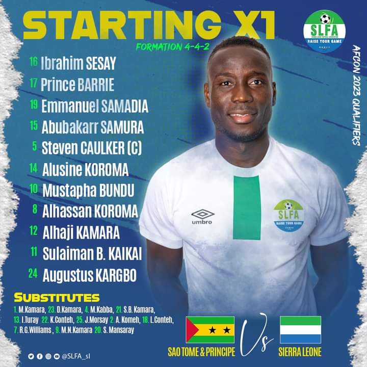 Leone Stars of Sierra Leone will face The Falcons and True Parrots Team of Sao Tome and Principe in the AFCON 2023 Qualifiers game in Grand Stade d’Agadir, Morocco today, Sunday 26th March, 2023.