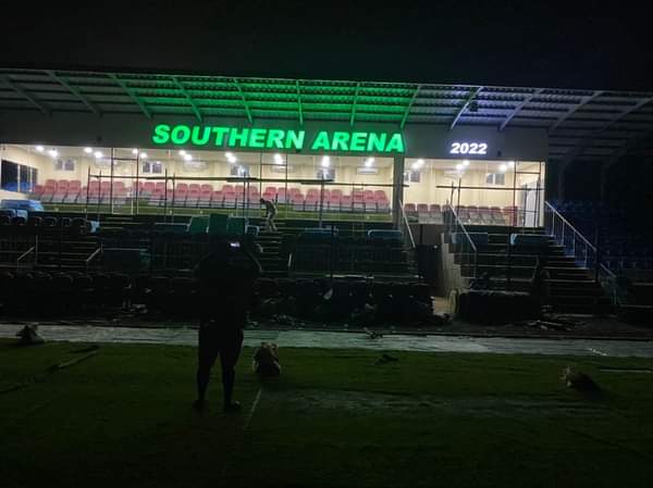 At the time of this writing, the installation of the artificial turf in the stadium has been completed, seats all installed and ready. On the pictures that are making rounds on the media, a night test of the look of Stadium was done with the name “SOUTHERN ARENA STADIUM” beautifully lit and attractive.
