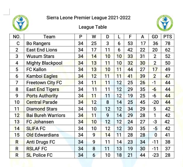 The final Sierra Leone Premier League table is posted below 👇🏽