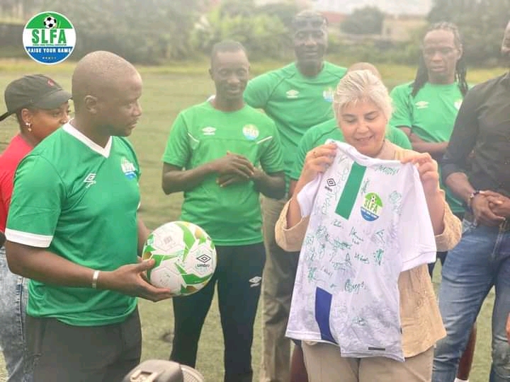 As a token of appreciation and a symbol of respect, the Head Coach John Kiester presented to the Ambassador a pair of Leone Stars official jersey and a match ball signed by all players and technical staff present at the training ground.