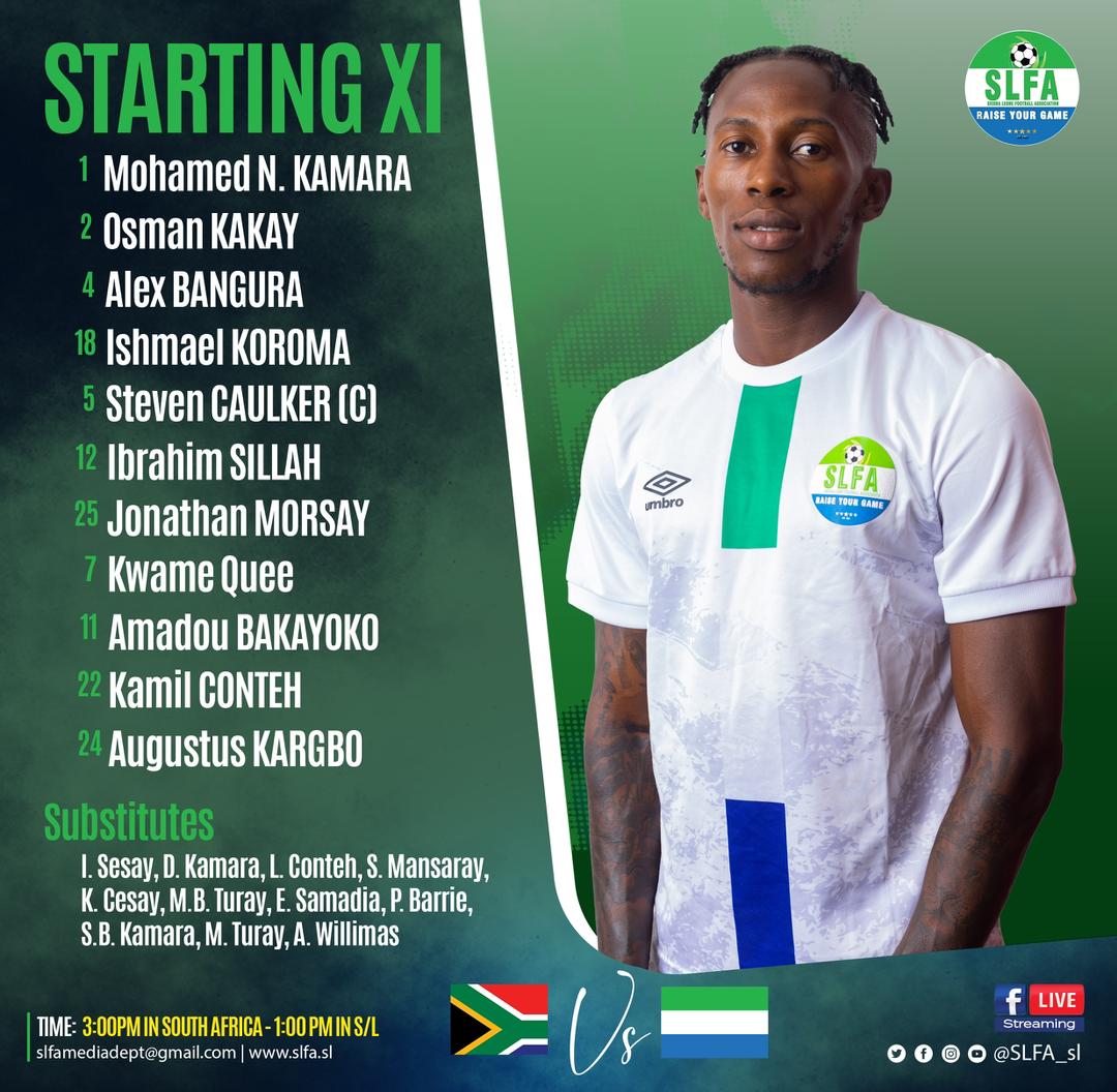 Sierra Leone will take on South Africa today 24th September, 2022 in the international break with both teams preparing for next year’s Africa Cup of Nations qualifiers.