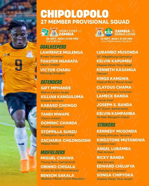 As the 2025 Africa Cup of Nations (AFCON) qualifiers approach, Zambia’s national team coach, Avram Grant, has unveiled a 27-man provisional squad. The Chipolopolo are gearing up for a crucial clash against Sierra Leone on September 10, 2025, at the Levy Mwanawasa Stadium, followed by a highly anticipated encounter with Ivory Coast.