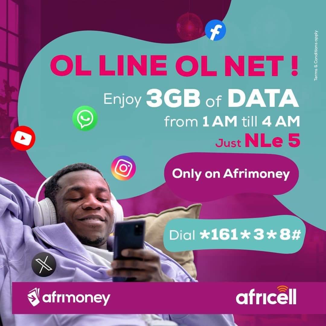 Africell has informed its customers in Sierra Leone that, they may start enjoying free midnight on-net calls starting at 12-4am for jus Nle 5.