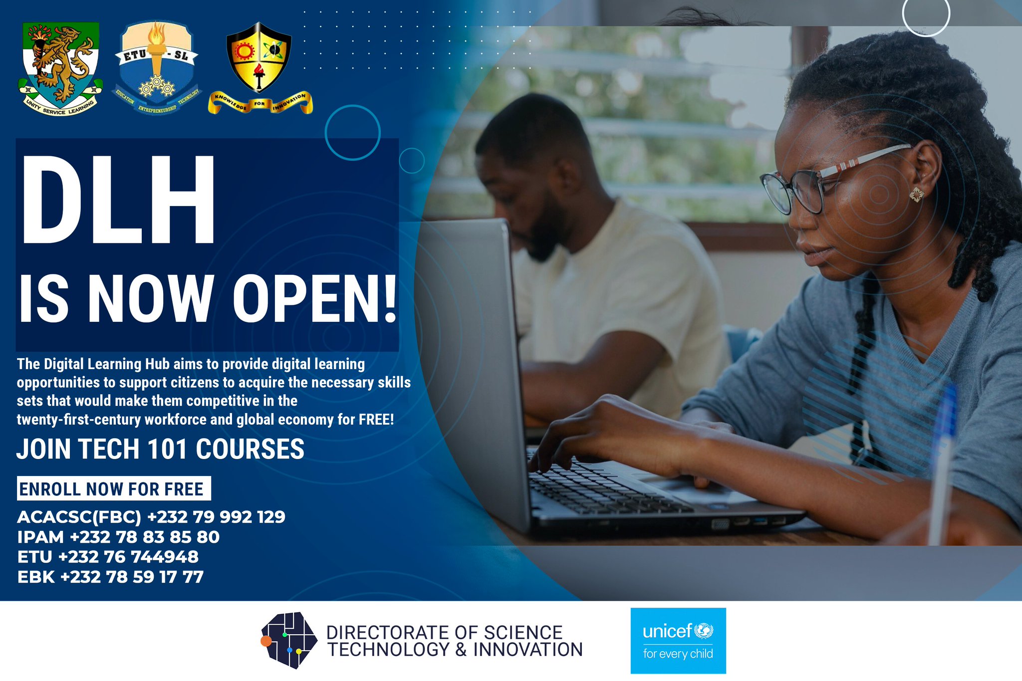 The Directorate of Science, Technology and Innovation (DSTI) and UNICEF Sierra Leone have teamed up to introduce a wave of digital learning opportunities aimed at empowering citizens across the country.