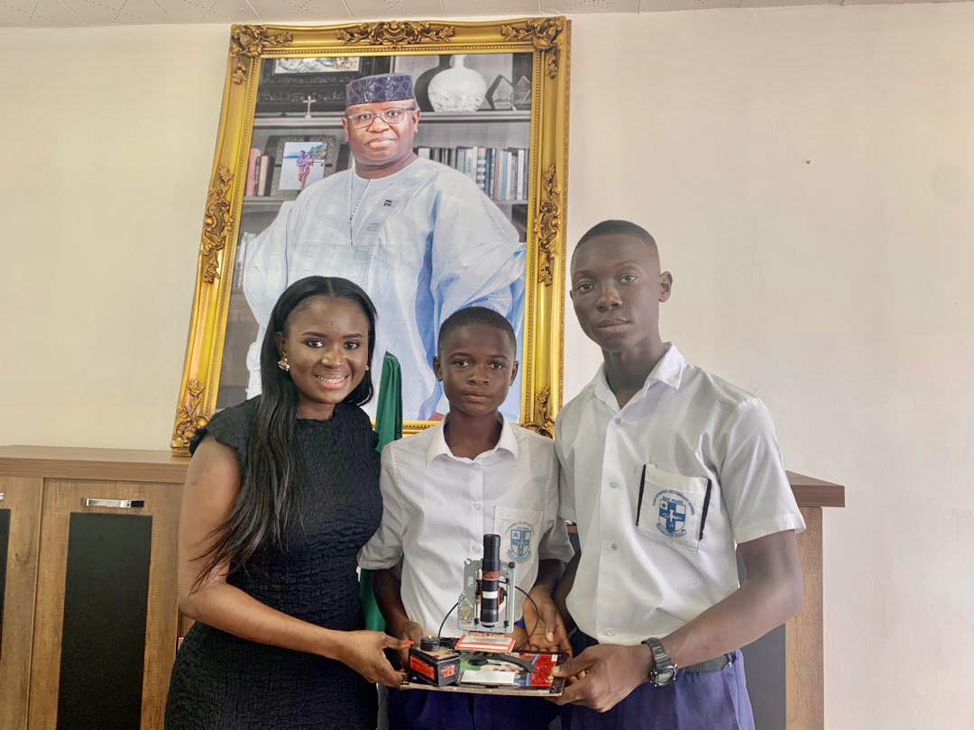 Salima Bah, Sierra Leone’s Minister of Communications, Technology, and Innovation in Sierra Leone has hosted two brilliant young minds from the Saint Edwards secondary school on some innovative skills they possess.